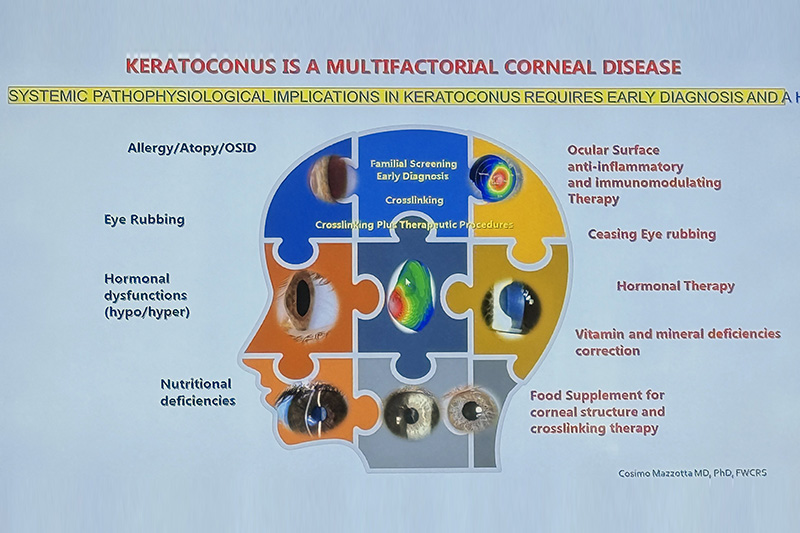 Il cheratocono è una malattia della cornea che provoca l'assottigliamento e la deformazione della sua struttura, portando a una progressiva perdita della vista. Negli ultimi anni, diverse ricerche hanno suggerito che il cheratocono potrebbe non essere solo una patologia locale, ma anche una manifestazione di un problema sistemico, legato all'infiammazione e alla carenza di vitamina D. Una recente ricerca condotta dall’Istituto Scientifico San Raffaele di Milano — sostenuta anche grazie ai contributi raccolti da AICHE nel corso degli anni — ha aperto nuove prospettive nel trattamento del cheratocono, evidenziando il possibile ruolo protettivo della vitamina D nella sua progressione, soprattutto nei pazienti più giovani.